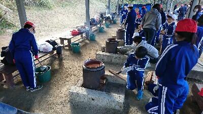 午後の活動は塩づくりと焼き芋づくりでした。海から塩水を取ってきて、それを煮詰めて塩を作りました。また同時に焼き芋も作りました。