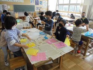 図工室で、色づかいに工夫しながら、楽しそうに作品作りをしていました。