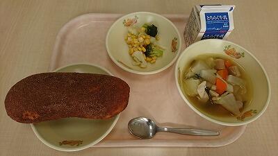 今日の献立は、ココア揚げパン!、ポトフ、花野菜サラダ、牛乳でした。