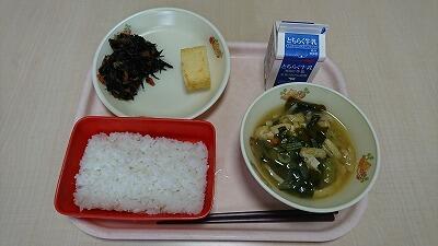 今日の献立は、おさかなランチで、ご飯、ホッケ一夜干し、和風和え、里芋と大根のそぼろ煮、牛乳でした。