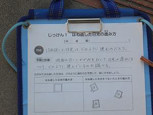 晴天の下、「光の進み方」についての学習を楽しそうに行っていました。