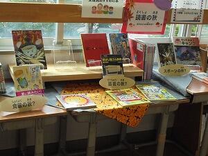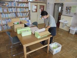 図書室内の掲示の工夫などに、忙しそうに取り組んでくださっています。