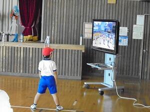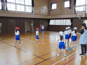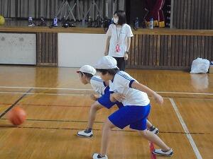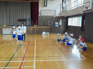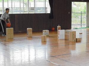 2グループに分かれて、ドッヂボール形式とボーリング形式の運動を行っていました。