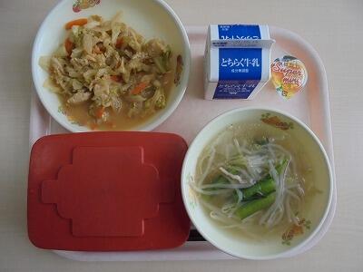 今日の給食の献立は、【ごはん・牛乳・チーズタッカルビ・もやしのスープ・みかんゼリー】でした。