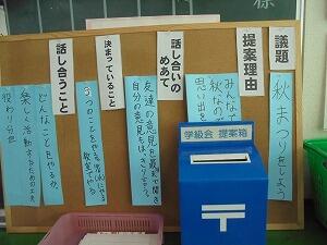 6年生の学級会の時間。「秋祭りをしよう」という議題で、話合いを進めています。