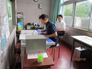 各教室では、担任がエアコンを稼働させ教室を冷やし、健康チェックの準備をして待っています。