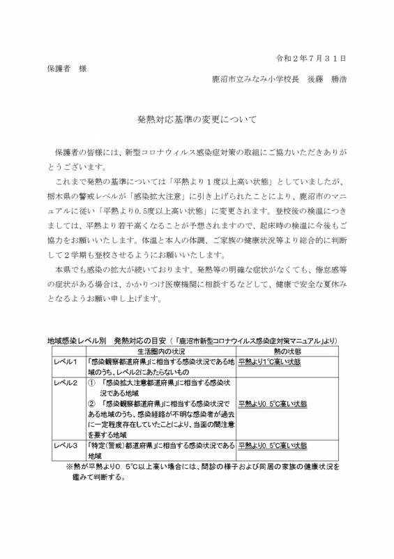 新型コロナウイルス感染症に関して、栃木県の警戒レベルが「感染拡大注意」に引き上げられたことにより、鹿沼市でも「発熱」のとらえ方の基準が変わりました。