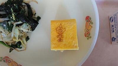 今日の献立は、塩(エン)ジョイランチで、ご飯、親子煮、和風和え、りんご、牛乳でした。
