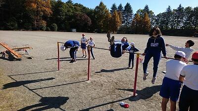 ボールをこわがる児童もいましたが、和気あいあいと楽しみました。