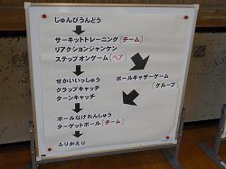 動きの合間の説明では、静かになってしっかり聞いて、英単語を発音する場面