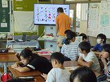 学校の様子について説明し、その後、子どもたちの学習の様子について