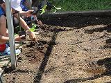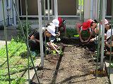 中庭の花壇(畑)に、一人一人がていねいに苗を植えることができました。