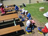 さわやかな晴天の下、1年生全員であさがおの種まきをしました。