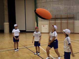 ウォークラリーの後は,スポーツ館でニュースポーツを行いました。