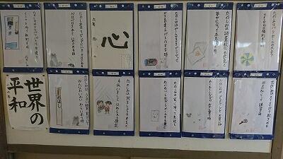 6年生が国語の時間に作った短歌が、廊下に掲示されています。