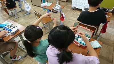 初めて裁縫をする児童がほとんどだったようで、玉止めに苦戦していましたが、友達と教え合って学習しました。