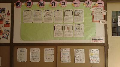 廊下には図書委員おすすめの本や図書委員がまとめた学年ごとの人気の本ランキングが掲示されています。