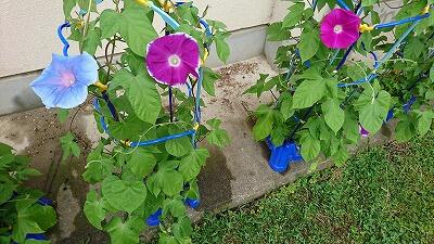 育てているアサガオに次々ときれいな花が咲き始めました。