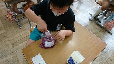 苦手な野菜があっても、自分が作った料理のためか、がんばって食べる姿がありました。
