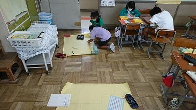 アンケートを取ったり、インタビューしたりして記事を書き、それを模造紙に割り付けしていきます。