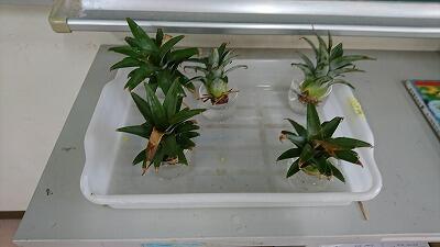 5年生が社会科で沖縄県の学習をしたことをきっかけに、パイナップルを育て始めました。