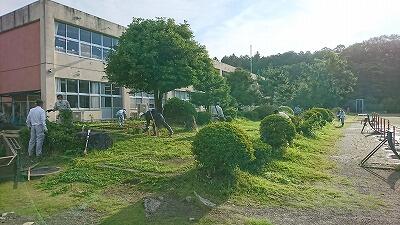 お休みの日の早朝にも関わらず、自治会をはじめ、地域の皆様のご協力で、下草刈りや樹木の剪定等をしていただきました。