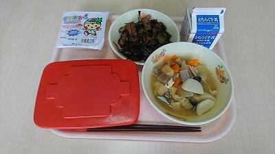 本日の献立は、ご飯、冷ややっこ、五目煮、田舎汁、牛乳でした。