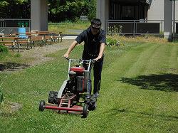 そんな忙しい中、学校のために中庭の芝生の手入れをしてくださっている先生もいました。