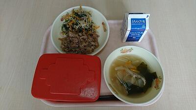 今日の献立は、セルフビビンバ(ご飯、ビビンバの具)、冬瓜スープ、牛乳でした。