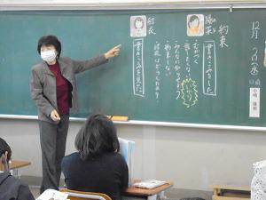 新規採用教員の指導教員である湯澤先生による示範授業を行っていました。5年生も、先生の問いかけに対して、自分の考え(意見)を述べていました。