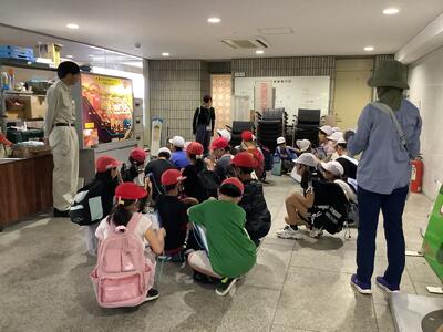 子供たちは社会の授業で学習したことを確認しようと、真剣に見学していました。