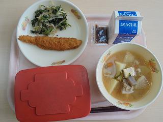 今日の献立は、【ごはん・牛乳・ししゃもフライ・ごまあえ・豚汁】でした。
