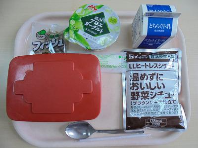 メニューは、【ご飯・牛乳・ブラウンシチュー・アロエヨーグルト・ミニフィッシュ】でした。