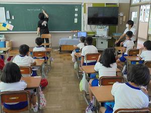 5時間目。1年教室から聞こえる嬉々とした声に誘われて教室をのぞくと、生活科の学習。