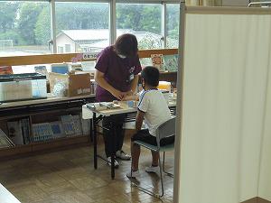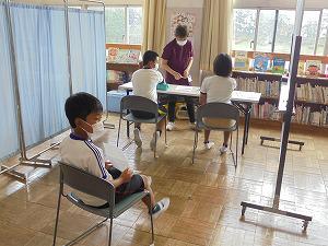 密になるのを避けるために、図書室を活用して検診を行いました。