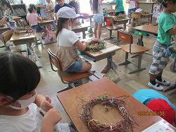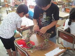 1年生が、あさがおのつるでリース作りを行っています。