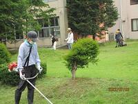 お休みの日の早朝にも関わらず、自治会を中心にした地域の皆様、PTAの皆様に、学校敷地内の草払いと除草をしていただきました。