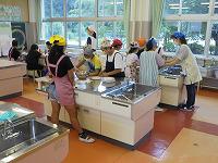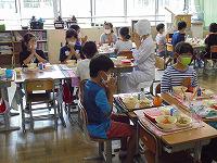 お昼は、子どもたち(4年生.5年生)と一緒に、本日の給食を試食して