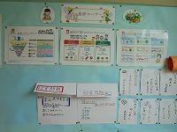 食育についてのコーナーや児童会のコーナー、総合的な学習のコーナーや
