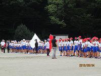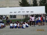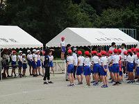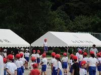 校庭で行った開閉会式の練習では、高学年児童が中心となって全体の位置取りや