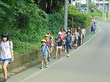 夏休み前に実施した通学路安全点検の時の記録(写真)をもとに、全校生が登校班ごとに集合し、
