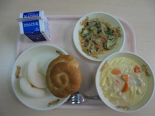 【ミルクパン・牛乳・チキンのオーブン焼き・コールスロー・ワンタンスープ】でした。