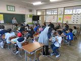 この時間帯は、いつも集中してお話に耳を傾けています。今日も良い一日のスタートがきれました。読み聞かせボランティアの皆様、いつもありがとうございます。
