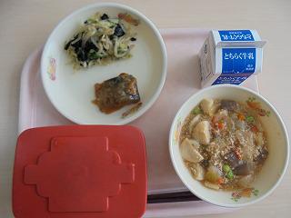 献立は、【ごはん・牛乳・麻婆豆腐・中華あえ(はるさめ)】でした。