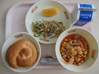 メニューは、【米粉パン・牛乳・ポークビーンズ・ごぼうサラダ・オレンジ】でした。