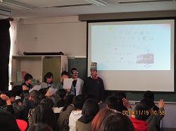 ALTのアリスター先生が、(子どもたちに)英語に興味を持ってもらおうと工夫して