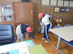 現在の校長室そうじは、二人とも6年生です。黙々とまじめに清掃に取り組みます。