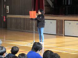 表彰伝達をした後に行った終業式では、1年生の代表児童発表の後、学校長の話、児童指導主任や安全教育主任からの話をしました。