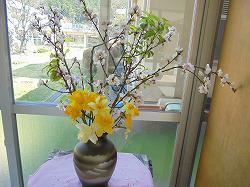 地域の宇賀神様がお花を届けてくださり、お客様を迎える玄関も、春の装いです。