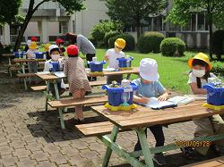 中庭では、朝顔の種を植えたり、ミニトマトに水やりをしたり‥‥、教室では家庭学習プリントについての説明を受けたり‥‥と、短い時間ではありましたが学校生活を実感する貴重な登校日になったことと思います。
